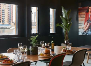 The Living room and Globe area overlooking historic Royal Docks have relaxing feel and engaging atmosphere perfect for networking, breakout sessions, Lunch or a Cocktail Reception.