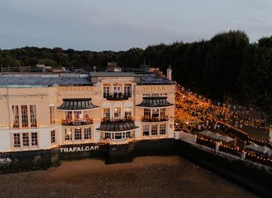 Established in 1837, the Trafalgar Tavern rises gracefully from the River Thames and is the heart and soul of maritime Greenwich, celebrating the history and traditions of London’s finest pleasure resort. The Trafalgar is renowned for its unique location, unrivalled atmosphere, charming staff, opulent interior, magnificent art collection, extensive range of beers, wines and spirits and excellent food - whitebait a speciality. Its magnificent function rooms are available for weddings, celebrations and corporate occasions, and frequently host events and entertainments. Its extensive outdoor seating is universally popular with locals, visitors and tourists for wining, dining and enjoying the pleasure of life by the river.