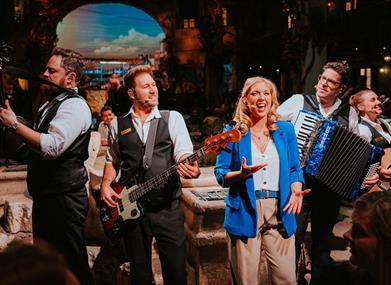 Leave your cares at the door and be welcomed as honoured guests by Nikos and his family. Step into Skopelos as you discover a warm, romantic, and funny story performed all round you. Experience all this alongside a live soundtrack brimming with your favourite ABBA hits including Mamma Mia!, Dancing Queen, Does Your Mother Know, Waterloo, SOS, When I Kissed the Teacher and many more. Plan your getaway with family and friends to MAMMA MIA! THE PARTY for the ultimate Greek holiday experience to remember.
