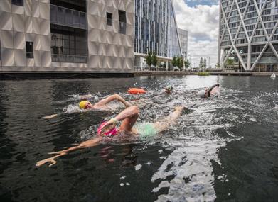 Canary Wharf has opened its first open water swimming venue as London heats up for summer, residents, visitors and workers can take a dip the Middle Dock waters and enjoy views of the iconic One Canada Square and Newfoundland whilst swimming.