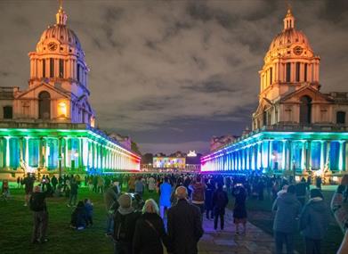 Maritime Greenwich World Heritage Site will be illuminated with a FREE programme of events as part of the Greenwich Light Time series, linking the National Maritime Museum and Old Royal Naval College through Greenwich Town Centre.